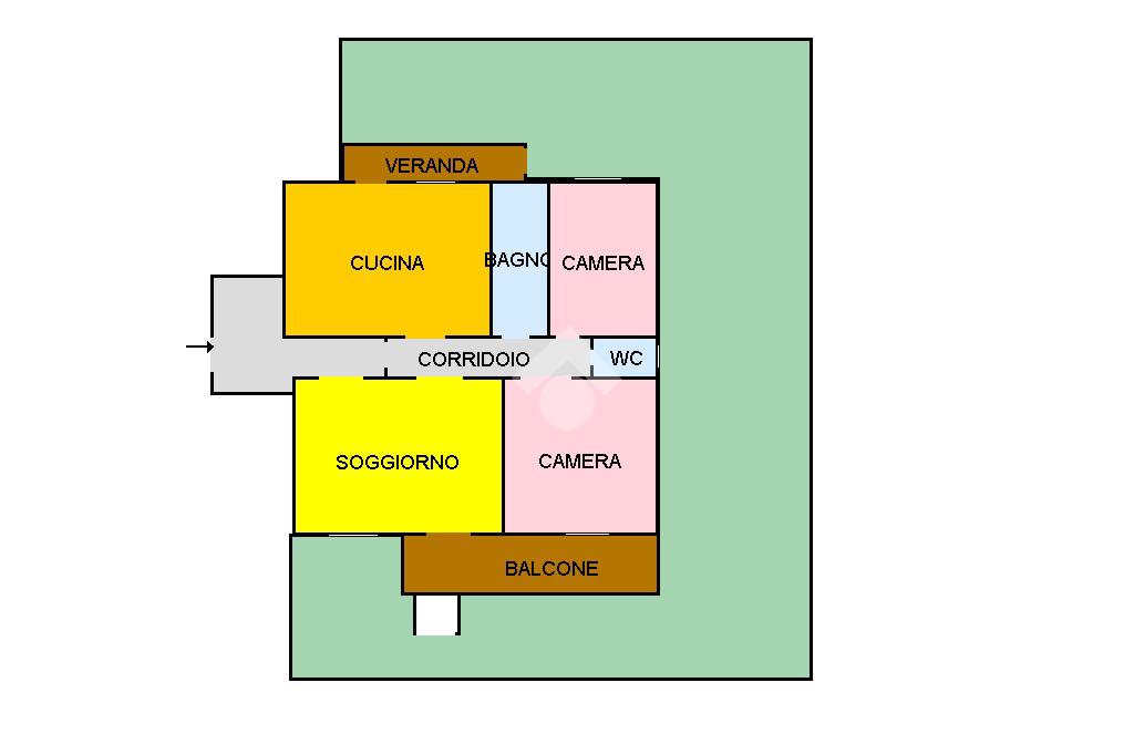 Casa si apre su un ampio disimpengo che introduce alla zona giorno, composta da un salone con accesso diretto allo spazio esterno, è uno dei punti di forza della casa, si presta a diversi utilizzi: perfetto per chi ha il pollice verde, per chi desidera uno spazio per i bambini, per i momenti di convivialità all'aperto.