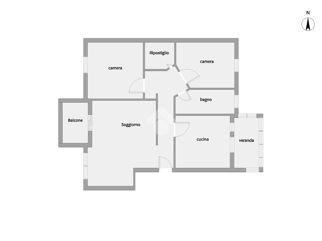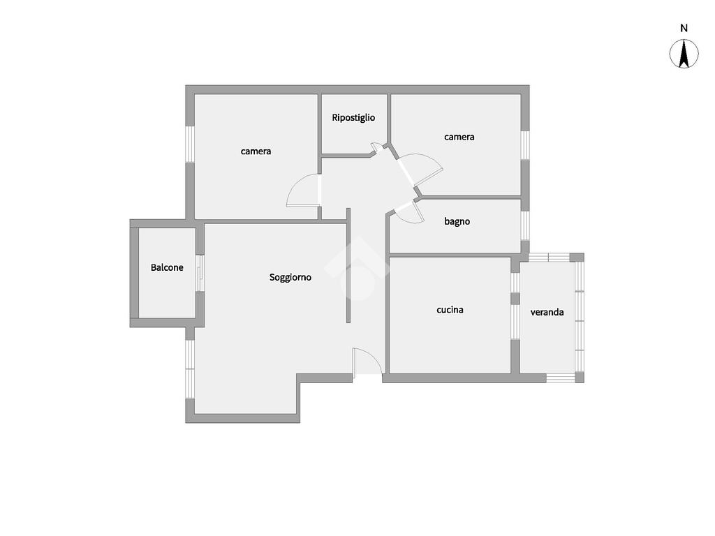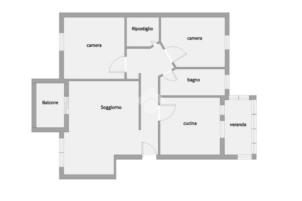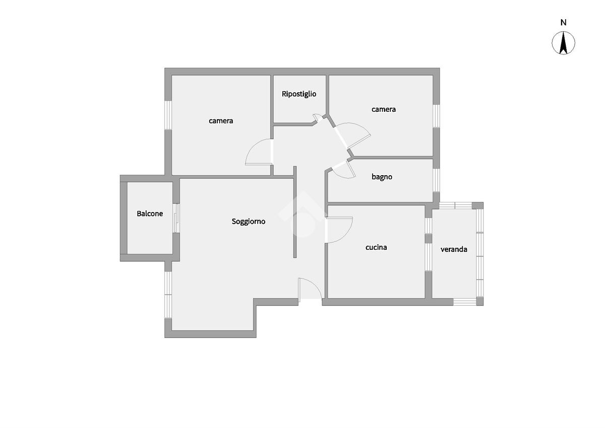 L'ingresso in casa è su disimpegno che divide la zona giorno composta da un ampio soggiorno con affaccio su balcone ed una cucina abitabile con veranda ed esposizione su retroprospetto.